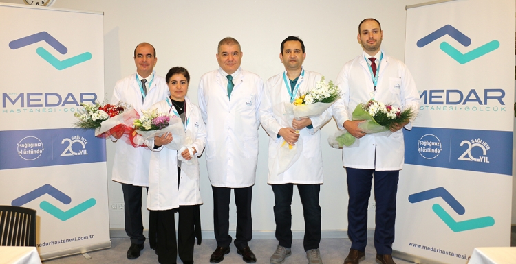 Dr. Talus'un konuşmasının ardından Özel MEDAR Gölcük Hastanesi Başhekimi Op. Dr. Veysel Besnili, dört yeni hekimi tanıttı, onlara çiçek takdiminde bulundu. Çocuk sağlığı ve hastalıkları alanında isim yapmış olan Uzm. Dr. Ferhan Mutlu ve Uzm. Dr. İsa Çevrük çocuk hastalara saat 23.00’e kadar hizmet verecek. Genel cerrahi uzmanı Op. Dr. İhsan Pekrü ile bu daldaki hekim sayısını üçe çıkaran Özel MEDAR Gölcük Hastanesi, acil hekimi Dr. Cengiz Ferah ile acil servis memnuniyetini de artırdı.