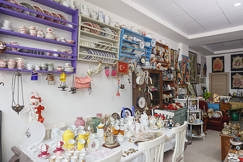 Şu anda dükkanımızda 1906 yılından kalma bir Osmanlı sandığı ve çok değerli eski bir ev tipi triko makinası bulunuyor. Bunun yanı sıra yine antika değeri olan sandıklarımız, çay ve kahve fincanlarımız, bakır ürünlerimiz de var.