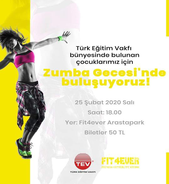 İlimizin en çok tercih edilen spor merkezi Fit4ever Pt Studio, Türk Eğitim Vakfı (TEV) ile ortak bir projeye imza atıyor. Fit4ever ve TEV, 25 Şubat Salı akşamı Saat 18.00’de Fit4ever Arastapark Şubesi’nde muhteşem bir zumba gecesi düzenliyor. TEV bünyesindeki çocuklara destek sunmak amacıyla yapılan gece katılım için 50 TL ödemeniz yeterli olacak. Zumba gecesine hem eğlenecek hem de bir çocuğun hayatına dokunmuş olacaksınız.