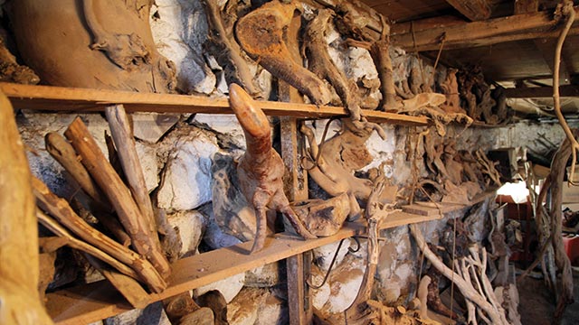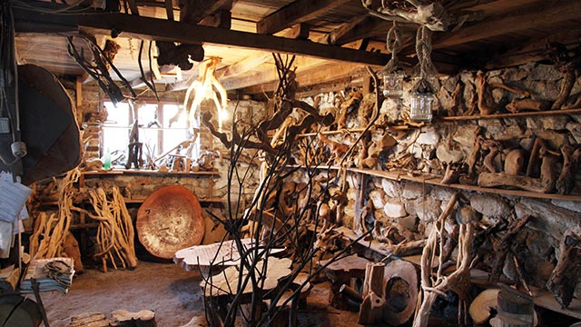 Ahmet’in atölyesi binlerce kütük, kök ve ağaç dalıyla dolu.