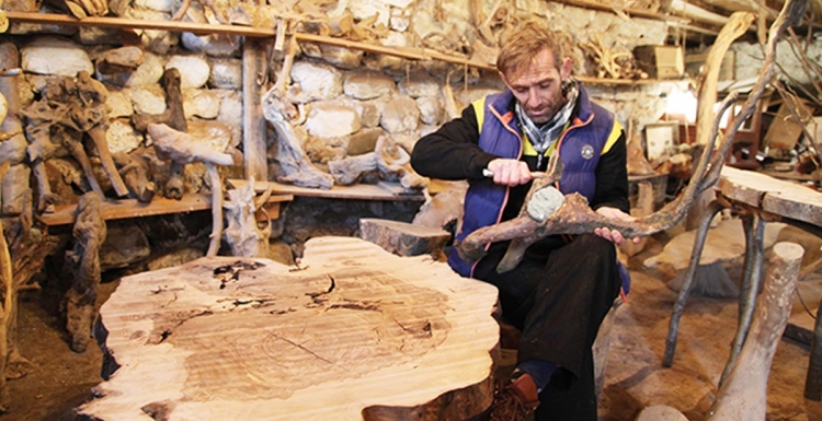 Yanlış duymadınız… Ahmet Kezer, ormanlardan, derelerden, taş ocaklarından topladığı ağaç köklerini, kütükleri, hatta bildiğiniz sopaları küçük dokunuşlarla birbirinden orijinal dekoratif objelere, işlevsel mobilyalara dönüştürüyor.