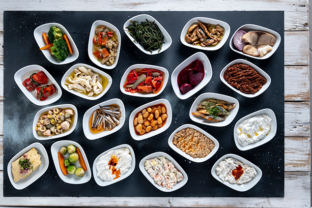 Çetin Balık’ın meze menüsü de çok zengin. Genel hatlarıyla Ege mutfağına has lezzetlerin servis edildiği mekanda Girit ezmeden atoma, favadan köpoğluna, beyzadeden sultana, levrek marinden lakerdaya, vişneli yaprak sarmasından ahtapot salatasına kadar yaklaşık 30 çeşit meze bulunuyor. Yılmaz Bey, meze çeşitliliğine özellikle önem veriyor, “Misafirlerimizi her yerde bulunmayan farklı çeşitlerle ağırlamayı seviyoruz, mezelerimizin lezzetine çok güveniyoruz” diyor.
