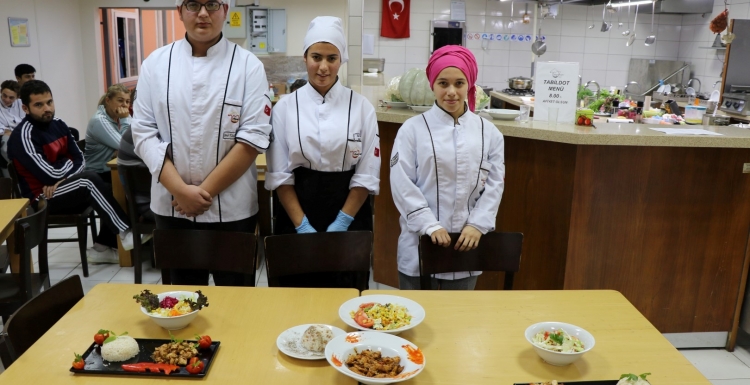 Aşçılık kursunda 8 aydır birçok farklı tarif üzerine eğitim alan aşçılık kursu öğrencisi 7 öğrenci, yemek yapma yarışmasına hünerlerini sergiledi. Kıyasıya rekabetin oluştuğu yarışmada öğrencilere 50 dakika verilerek mevsim salata, piliç kavurma ve pilav ya da makarna yapmaları istendi. Verilen sürede yemekleri eksiksiz yapan öğrenciler, yemeklerini jürinin beğenisine sundu.