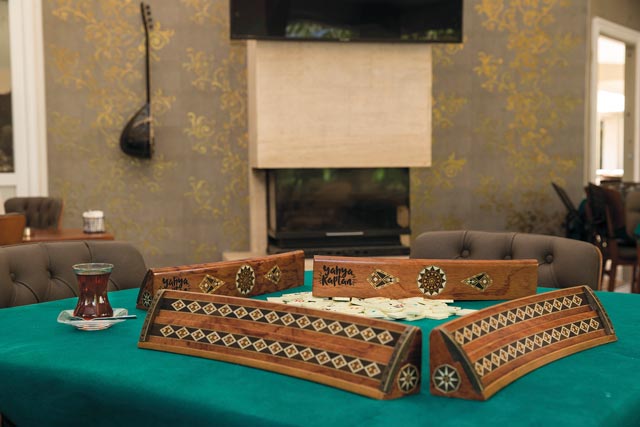 İç kısımda da oyun masaları var ama esas olarak, mekanın teras kısmı oyun salonu olarak düzenlenmiş. Burada tavla, okey, iskambil ve satranç oynanabiliyor. Kış aylarında şömine başında maç izlemek isteyenler için bir de büyük ekran televizyonu bulunan teras, nargile keyfi yapmak için de ideal.