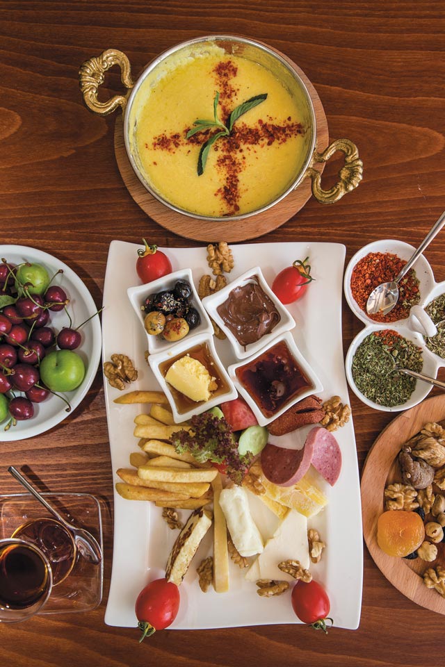 Yahya Kaptan Kahvesi’nin zengin bir kahvaltı menüsü var.
