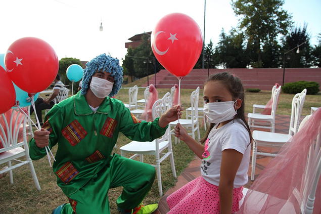 Koronavirüs tedbirleri kapsamında etkinlik alanında sosyal mesafe, maske takma ve hijyen kurallarından taviz verilmedi. Aileleriyle birlikte alana gelen çocuklar girişlere yerleştirilen dezenfektan noktalarında önce ellerini dezenfekte etti, ardından sosyal mesafe kurallarına göre yerleştirilen sandalyelere oturdular. Maskesiz hiç kimsenin alana alınmadığı etkinlikte sık sık tedbirlere uyulması konusunda hatırlatmalarda bulunuldu.