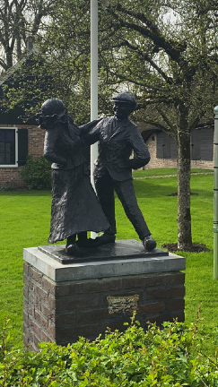 Tuğla bir kaide üzerinde duran bronz heykel, 2003 yılında yerel sanatçı Jan Krikke tarafından yapılmış ve folklorik bir dansı icra eden çifti tasvir ediyor.