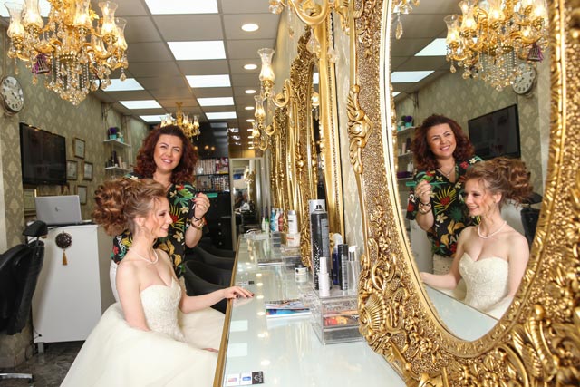 Kesinlikle. Evlenmeyi düşünmüyordum, 52 gün içinde söz, nişan, nikah hepsi oldu bitti. Adapazarı’nda salon açmayı planlarken kendimi İzmit’te evlenirken buldum. Düşünsenize eşim beni bir yıl önce görüyor, unutmuyor. Ne kadar beğenirsen beğen, nasıl unutmazsın? Annesi deseniz beni hiç görmeden “Oğluma alacağım” diye ısrar ediyor. “Teyzeciğim ben evlenmeyi düşünmüyorum, ben dükkan açacağım” diyorum, ikna olmuyor. “Kızım bir kez görüş, fikrin değişebilir” diyor. Annemi görerek bunları söylüyor. “Annesi güzelse kızı da güzeldir” düşüncesiyle. Bu arada Şarköy’de yazlıklarımızın dip dibe olduğu ortaya çıkıyor. Buna rağmen birbirimize hiç rastlamıyoruz ama annelerimiz hamamda karşılaşınca hayatımız değişiyor.