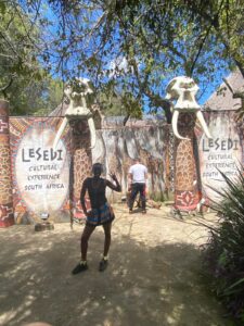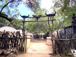 Sabah en merak ettiğim yere doğru hareket ettik. Lesedi Kültür Köyü. Turistler için kurulmuş, kabilelerin evlerini, yaşamlarını anlatan bir alan. Köyün girişinde ağaç bir platformun üstünde oturan Zulu’lu nöbetçiye “biz geldik” diyorsunuz, o da bağırarak içerideki reise haber veriyor. Reis geliyor, selamlaşmalar falan, beğenirse içeri alıyor. Amaaaan beni görecektiniz bütün numaralarımı döktürdüm maşallah.
