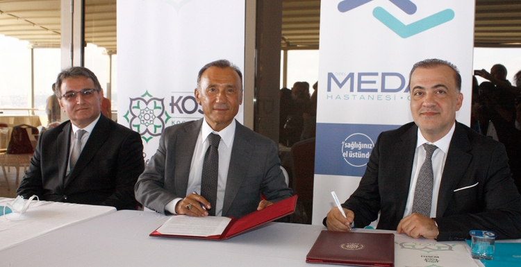 Toplantıda son sözü alan KOSTÜ Rektörü Prof. Dr. Fuat Bayram, “21 yıllık bir geçmişi olan MEDAR ile 35 yıllık geçmişi olan Avrupa Eğitim Kurumları’nın ortaklığı, Kocaeli ve ülkemiz için hayırlı olsun. 11 yıldır sağlık bilimleri alanında ön lisans eğitimi veren bu yapı, artık lisans ve lisans üstü eğitimler verecek. KOSTÜ bir sağlık bilimleri üniversitesi olmasına rağmen bunu teknolojiyle destekleyecek. Türkiye’de nitelikli sağlık personeliyle ilgili bir problem yok ancak bunun teknolojiyle de desteklenmesi gerekiyor. Türkiye’nin sanayi merkezi olan Kocaeli’de bunu sanayi işbirliğiyle gerçekleştirmeye çalışacağız. Sağlıkta ithalata dayalı sağlık modelinden artık patenti bize ait yerli üretim noktasında üniversite olarak üzerimize düşeni yapacağız” dedi. Konuşmaların ardından işbirliği protokolü imza altına alındı.