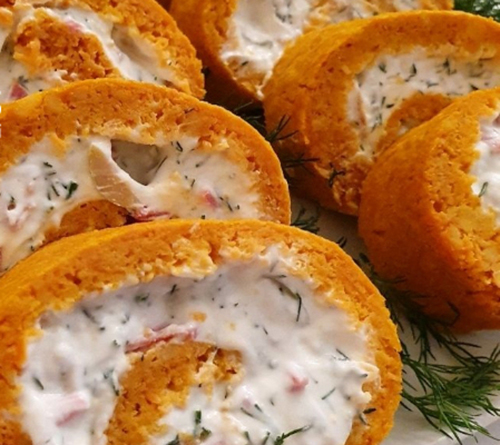 • Ayrı bir kapta hazırladığınız yoğurt, sarımsak ve maydanozlu karışımı havuçlu kekin tüm yüzeyine yayın ve rulo şeklinde katlayın.