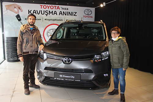 PROACE CITY’nin teslimatında araçlarının anahtarını Toyota Plaza Kocaeli Kaya Satış Danışmanı Cevdet Akkaya’dan alan Caner Demirel, büyük mutluluk yaşarken, PROACE CITY’nin donanım, konfor, teknoloji ve tasarımı karşısında hayranlığını gizleyemedi. PROACE CITY’sini teslim alan CANER DEMİREL, bir ticari araçta Toyota kalitesini yaşayacak olmaktan mutluluk duyduğunu belirterek “PROACE CITY’nin hayran bırakan stili çok etkileyici. İşin yanında tüm ailemle birlikte Toyota kalitesi ve konforunun da tadına varacağız. Toyota’nın tüm dünyada bilinen üstün avantaj ve özellikleri de eklenince ortaya böylesine mükemmel bir ticari araç ortaya çıkmış. Beklentilerimi fazlasıyla karşılayan özelliklere sahip mükemmel bir araca sahip olmak çok prestijli olacak” şeklinde konuştu.