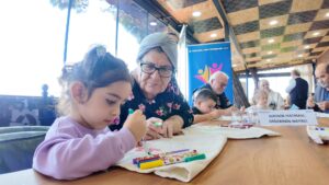 Lokomotif Çocuk Köyü sakinlerinin de 1 Ekim Dünya Yaşlılar Günü’nde ziyaret ettiği Saygınlar Kulübü üyelerinin keyfi yerindeydi. Kuşaklar arası etkinlik kapsamında Saygınlar Kulübü’ndeki büyüklerinin elini öpmeye gelen çocuklar, çanta boyama etkinliği yaptı ve çeşitli oyunlar oynadı. Gün sonunda ise Saygınlar Kulübü üyeleri ve misafirlerin keyifli vakit geçirmesi için Türk Halk Müziği konseri düzenlendi.
